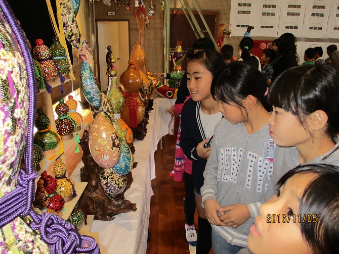 会場内には、めずらしいヒョウタンや菊の花も飾られていました。