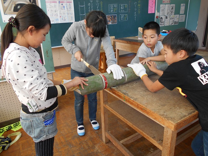 竹細工クラブがあります。パソコンクラブなどのインドアのクラブだけでなく。