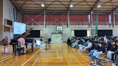 先週の金曜日、あさぎり町在住のピアニスト、月足さおりさんに来ていただき、コンサートを行いました。ご存じの方も多いかと思いますが、月足さんは、先天的な病気で数年前に右半身が麻痺し、左手のみで演奏される、世界的にも有名な左手のピアニストです。ただ、徐々に病気は進行し、現在は左手の人差し指がなんとか動く状態だそうです。左手の指一本ですが、演奏されるピアノの音色はとても美しいものでした。演奏の合間には、病気に対する向き合い方、ピアノ演奏への強い思いを子供たちに話していただきました。実は、このコンサート、人権集会としての実施でした。月足さんの思いや願いを、どう人権と結びつけ、子供たちの心に届けるかは、教師の仕事です。コンサートの後、改めて本校職員には話をしました。