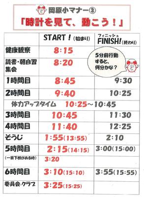 岡原小学校はノーチャイムです。子ども達は時計を見て行動します!