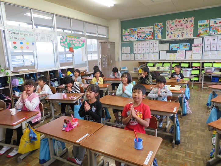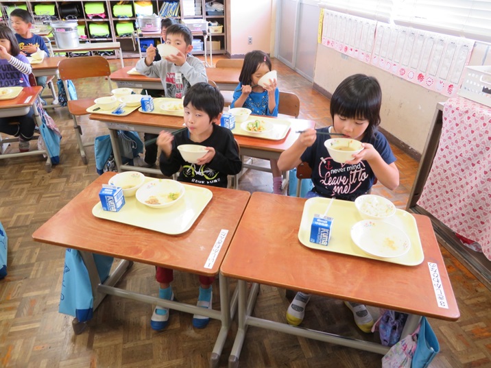 1年生は、いつもこんな感じで楽しく、おいしく給食を食べています。