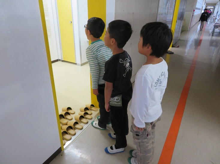 トイレの使い方もきちんと守ります。順番も守ります。1年生、すごい!ばっちりです!