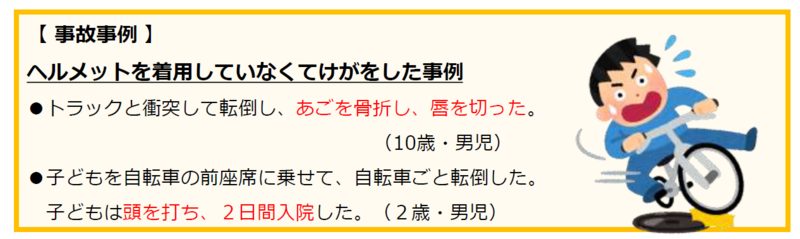 大切な子どもたちの命を守るために、自転車に乗る時は、必ずヘルメットをかぶるよう改めてご家庭でもお話ください。