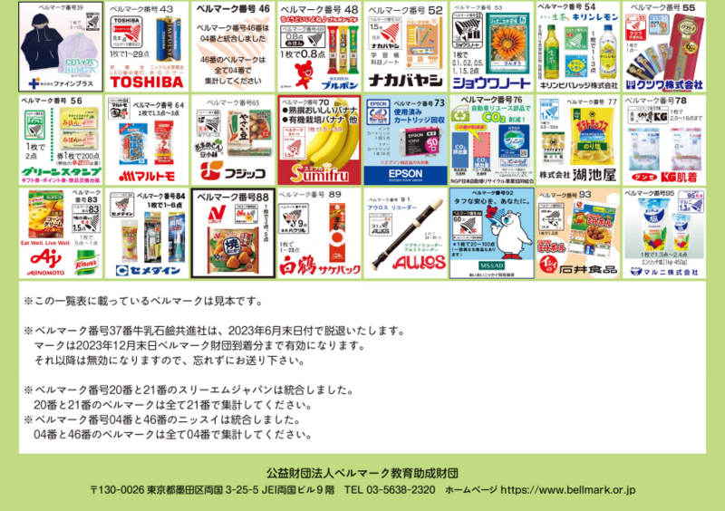 ※ベルマーク収集用封筒は後日配付いたします。