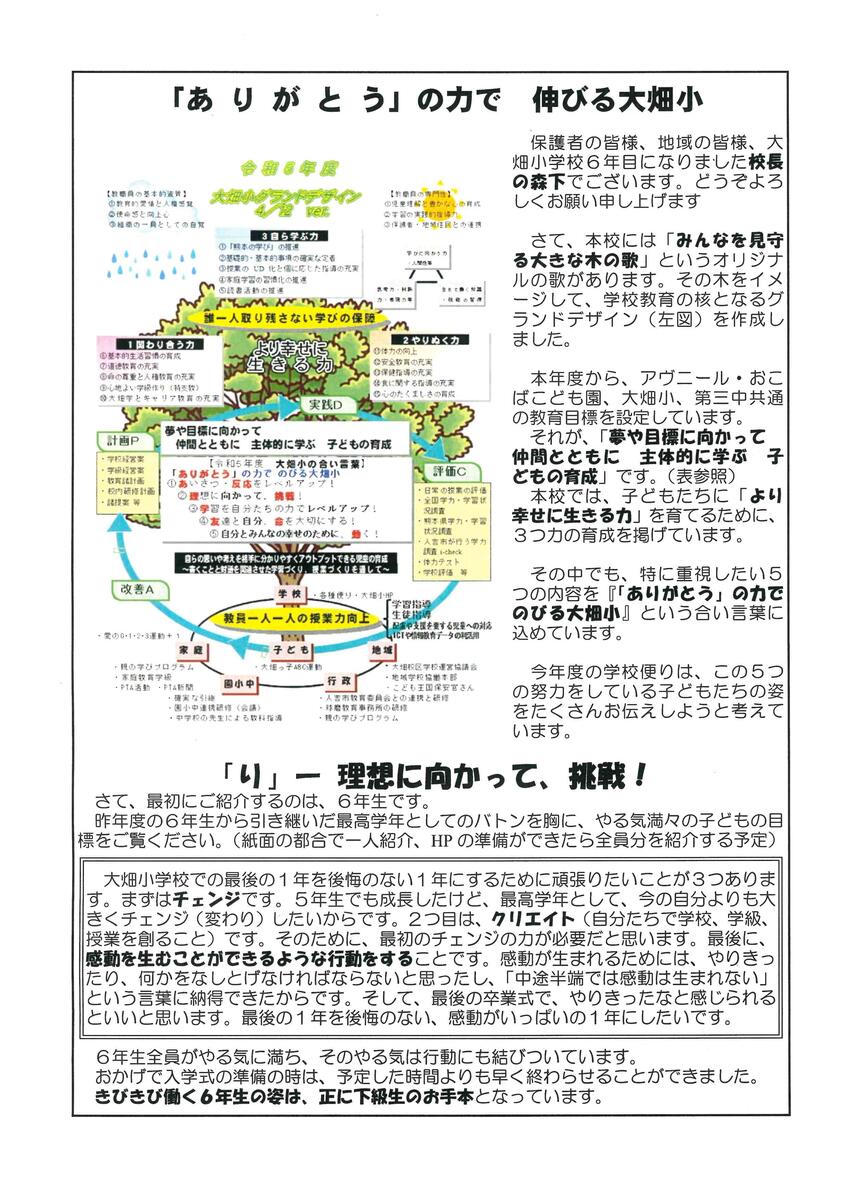令和6年4月学校だよりを掲載しました。20240430 大畑小だよりvol.1.pdf