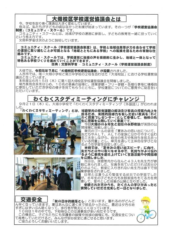 令和7年9月学校便りを掲載しました。20251001 大畑小だよりvol.6.pdf