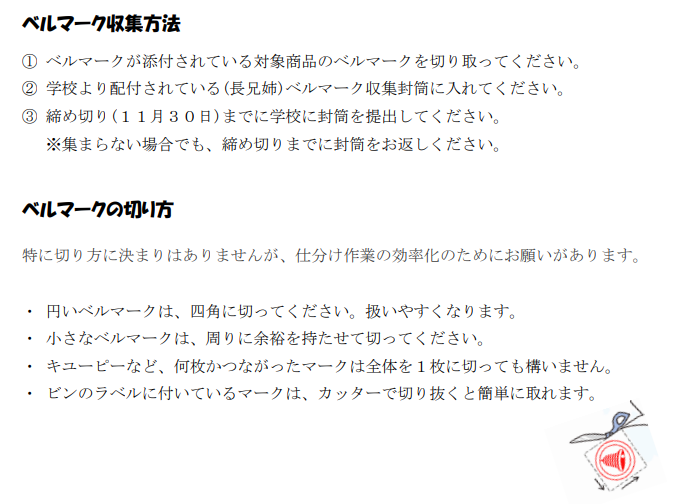 ※ベルマーク収集用封筒は後日配付いたします。