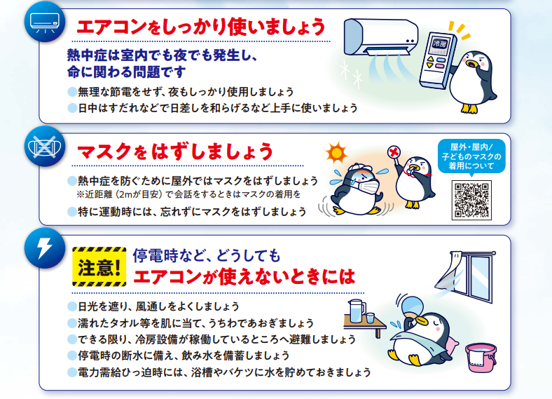 熱中症も懸念されるこの夏は、命や健康を守るため、無理な節電をせず、躊躇することなくエアコンを適切に使用することを呼びかけてください。