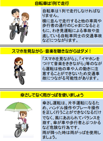 自転車も車の仲間です。交通ルールを守らないと、被害者にも加害者にもなる可能性があります。大畑っ子の大切な命を守るために、ご家庭でも自転車の乗り方についてお話ください。