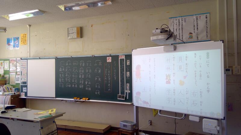 教室全面の様子です。プロジェクターなどICT機器も揃っています。