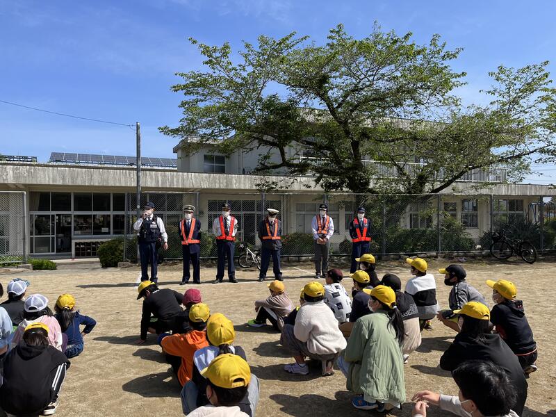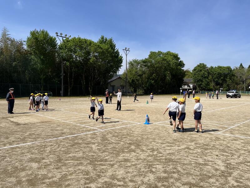 4月27日(木)に大畑駐在所の方、大畑交通安全協会の方、人吉警察署交通課の方、人吉市役所地域コミュニティ課の方、人吉市交通指導員の方に協力をいただき、交通安全教室を実施しました。