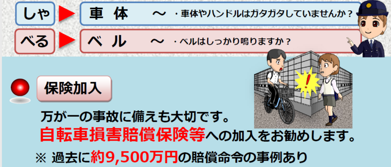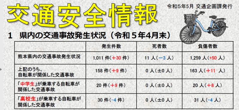 自転車が関係する事故が毎月起きています。交通ルール・マナーを守ることのお声かけとともに、お子さんと一緒に自転車に乗る前の点検をお願いします。