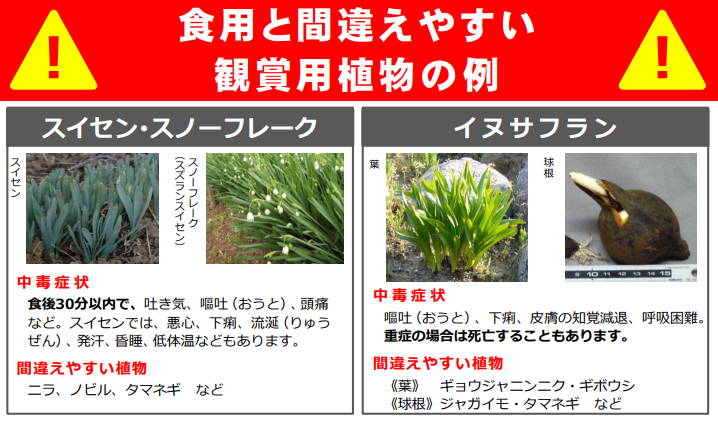 以下は、厚生労働省が作成したリーフレットです。観賞用植物の誤食による食中毒の予防をお願いします。