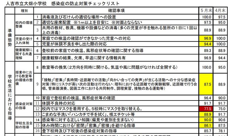 新型コロナ感染防止対策チェック表結果(5月)