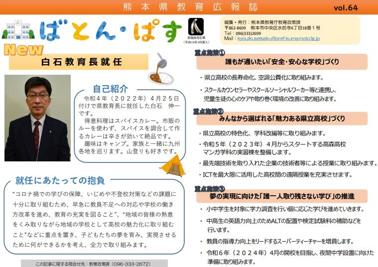 熊本県教育広報誌「ばとん・ぱすvol.64」