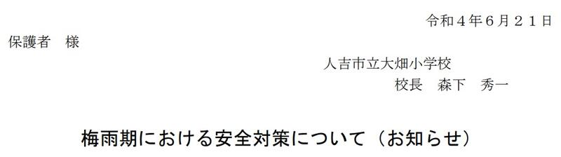 【保護者文書】梅雨期における安全対策について(お知らせ)