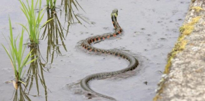 主に4月~11月の間に活動し、オタマジャクシやカエルが多くなるシーズンになると、田んぼ周辺などでは目立つようになります。ヤマカガシの活動時間は日中で、温度にもよりますが午前中の方が多くみられます。