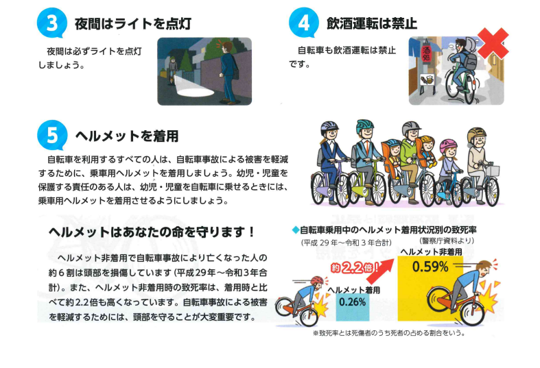自転車安全利用五則が改定しました。自分の命を守るために、自転車利用のルールやマナーを守るようご家庭でもお話ください。