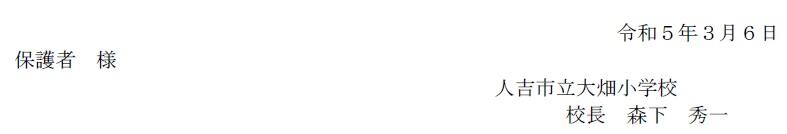 また、春休みの交通安全については、特に気をつけるようお声かけをお願いします。