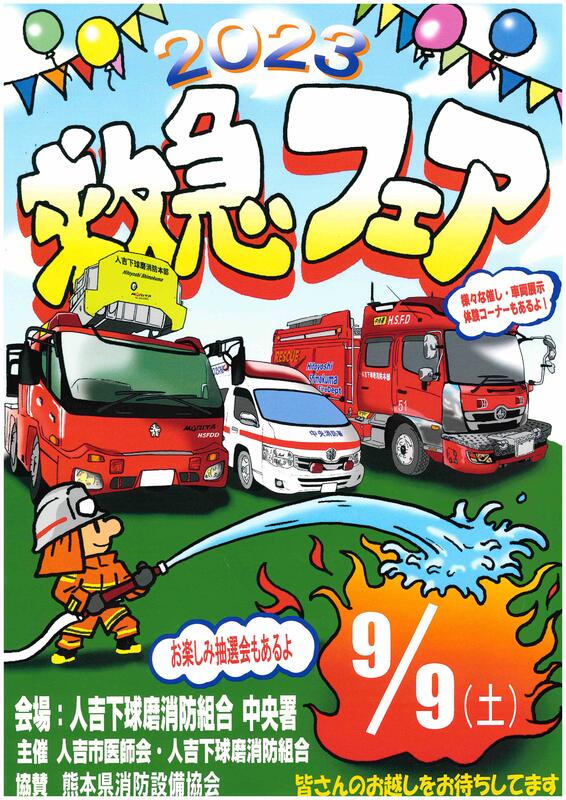 9月9日(土)に4年ぶりに「救急フェア2023」が開催されます。この催しは、子どもから大人まで楽しみながら、救急、消防に対する意識を深めていただくものです。ぜひ、お子さんと一緒にご参加ください。