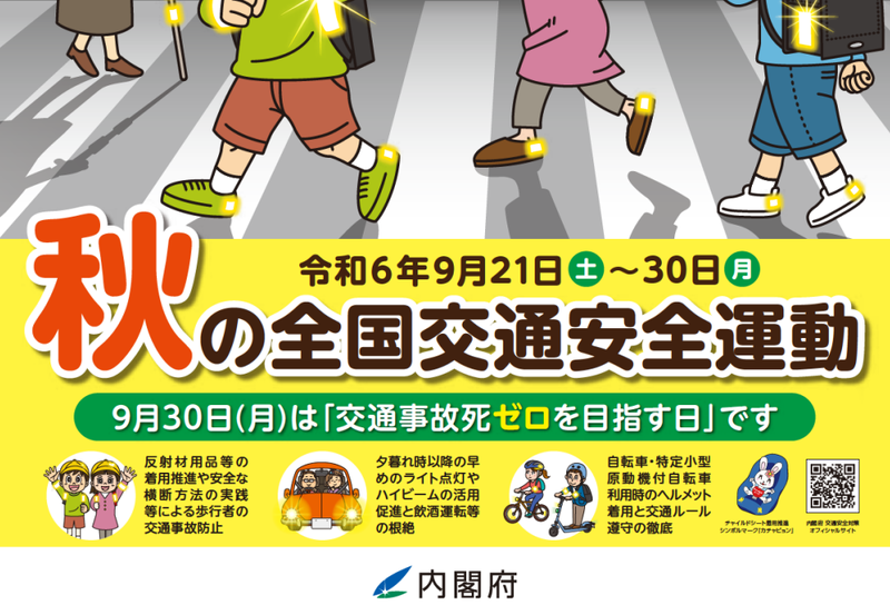 令和6年9月21日~30日までの10日間は秋の全国交通安全運動期間です。