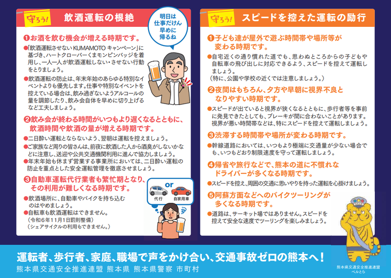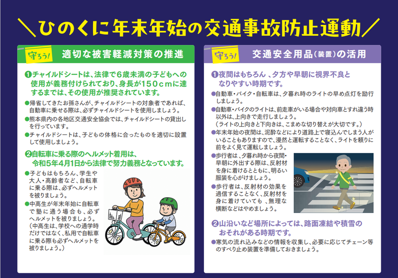 事故のない年末年始を迎えられるように改めて交通ルールやマナーを見直しましょう。