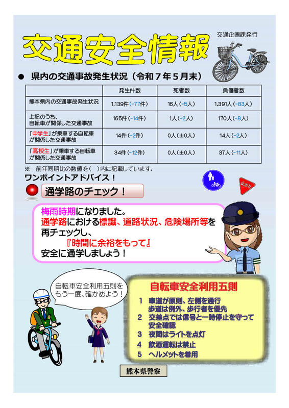熊本県警本部交通企画課から情報提供がありましたのでお知らせいたします。