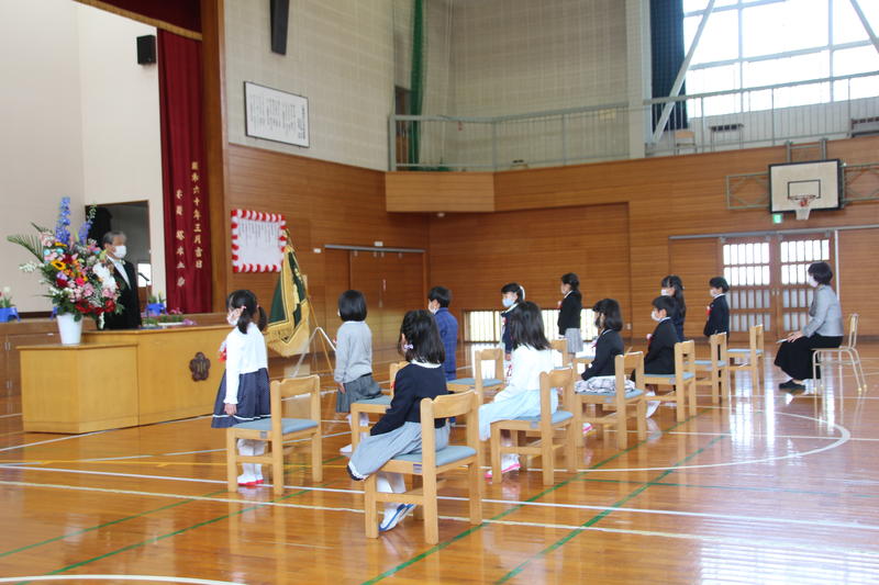 式のあいさの中で、新入生のみなさんにクイズを出しました。「第1問、遊ぶときにとても大事な人はだぁれ?」、何人か答えてくれましたが、「答えは、"ともだち"です。11人のみんなと早く仲良くなってください。」とお願いしました。「第2問、お父さんとお母さんからもらった、とっても大切なものはなぁに?」と聞くと、いち早く「ランドセル!!」と答えてくれました。残念ながら「答えは、”命”です。登下校中は十分気をつけてください。」とお願いしました。子どもからは大人が想像もしない「豊かな発想」で答えが返ってきます。質問の仕方がまずかったこともありますが、この純粋さを大切にしながら、教育活動を進めていかなければならないと、改めて感じました。