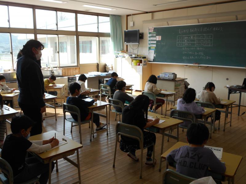先日に引き続き、「県学調」が終わりました。静かな教室には、答案用紙に書く鉛筆の音だけが響いていました。本日は算数のテストが実施されましたが、計算問題よりも「ことばで説明する」問題に苦戦していたようです。