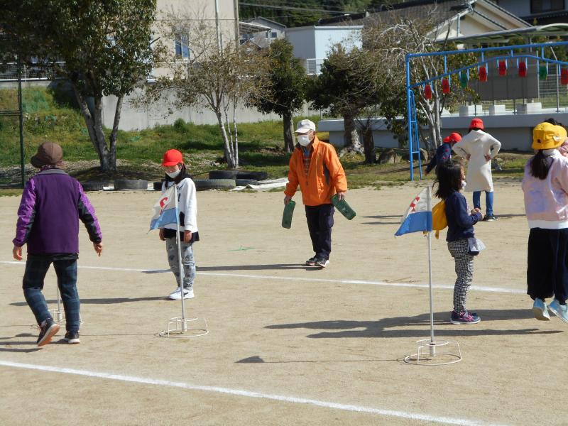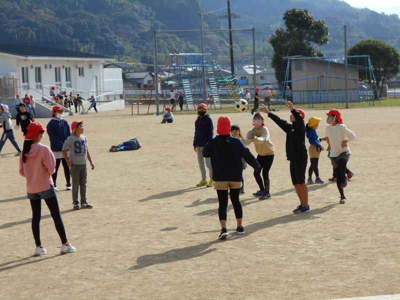 運動場では、上級生と下級生が仲良くボールで遊んでいます。上級生が上手に下級生の相手をしてあげている姿を見ていると、本当に心が和む、そんな毎日です。