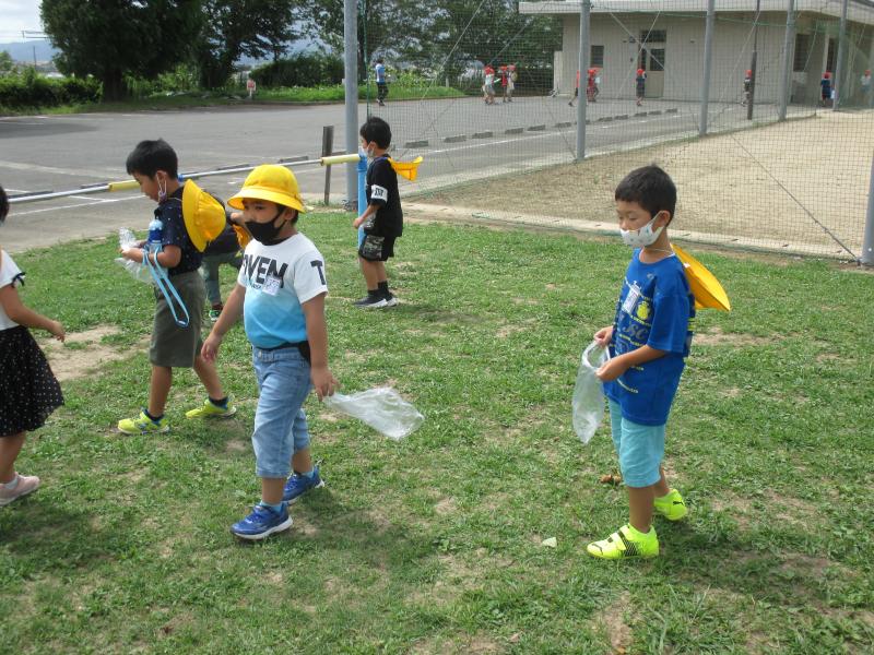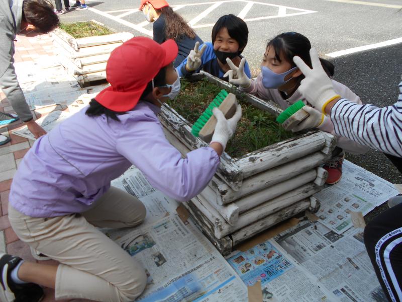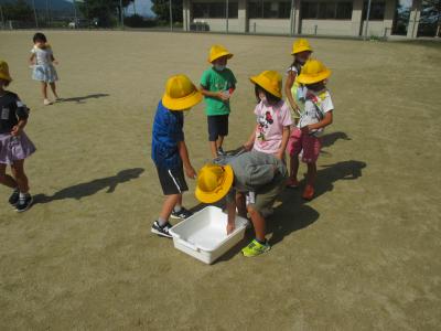 今日の5時間目に外で学習している子供たちがいました。4年生は、理科の「空気と水」の学習で空気でっぽうや水でっぽうの実験を行っていました。1年生は、生活科の学習で生き物探しをしていました。両学年とも、子供たちのいきいきとした表情が印象に残りました。