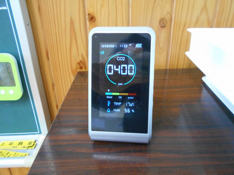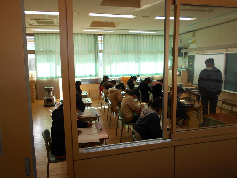 教室内は、気温18度・湿度70%の中で頑張っていました。(午前11時頃)