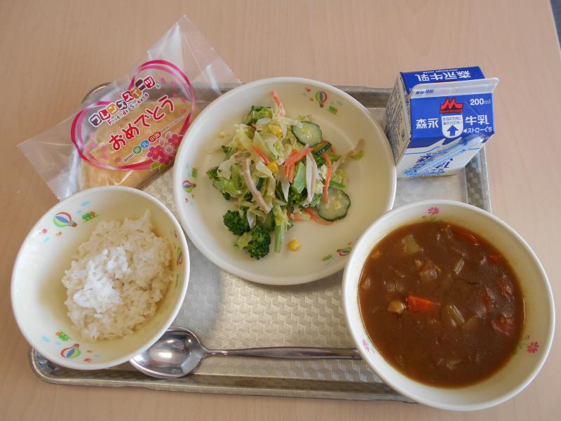 最後の給食です。安心・安全な給食を1年間ありがとうございました。何も異常がないことが当たり前、しかしその当たり前が一番難しいと身をもって知った1年でした。