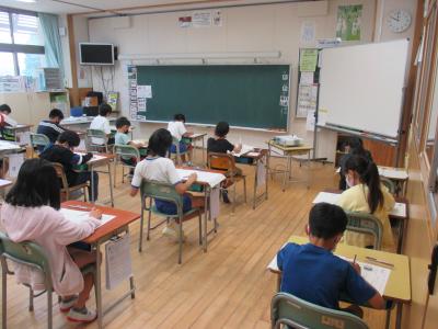 今日は大雨が心配されましたが、大きな影響もでずに、通常通り授業ができました。先週までは運動会モードの子供たちでしたが、今週からはいつも通りの学校生活に戻りました。昨日は3年生のイモ植え、今日は全国学力・学習状況調査と宇城市の学力テスト(写真は4年生)等がありました。