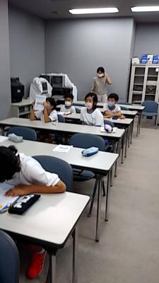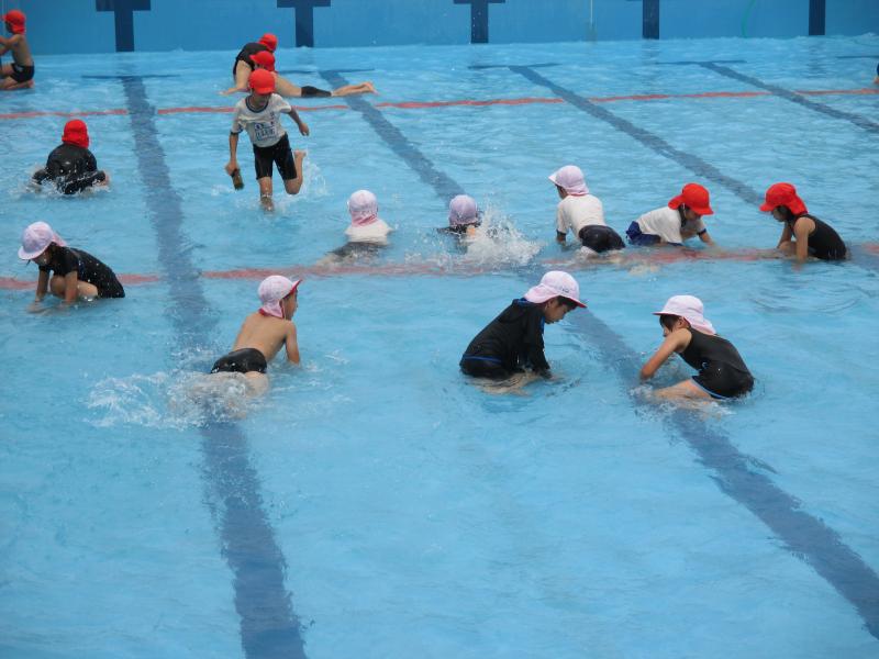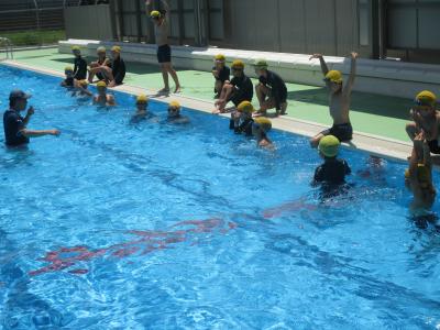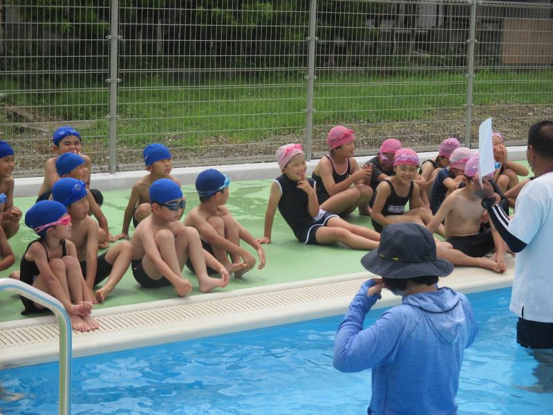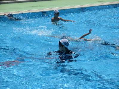 梅雨も明け、今日も快晴です。4時間目には中学年が水泳の授業を行っていました。3年生も泳げる子が増えてきました。4年生はプールサイドで平泳ぎの練習をしていました。