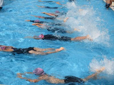 スタートはプール横からですが、最初は一斉に集団で走り始めますので、応援の際は十分注意をお願いします。