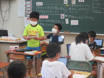 今週の月曜日に、夏休み明け初めての宇城市の審議員の先生による授業参観がありました。今回は2年生の算数と6年生の国語の授業をみてもらいました。2年生は「7+12+8を簡単に計算するしかたを考える授業」6年生は「時代や世代で言葉が変化することを理解する授業」がそれぞれ行われました。子供達の思考を揺さぶるとてもいい授業でした。