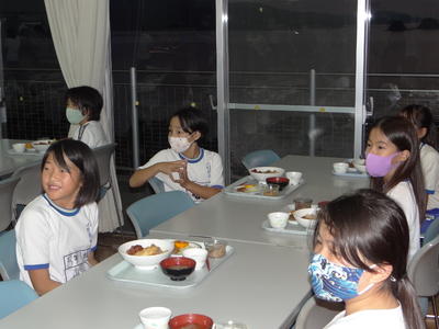 青年の家に帰ると、夕食とお風呂が待っています。海東小と時間を分けて対応するので、待っている間は各部屋で楽しく過ごしているようでした。