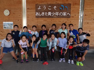 午前8時、全校児童のお見送りの中、無事出発しました。10時前には熊本県立あしきた青少年の家に到着し、早速、結団式と入所式です。青年の家の野間様から、「共感・交流・向上」の3つの理念について説明がありました。野間様には、このあとすべての活動について、お世話になりました。