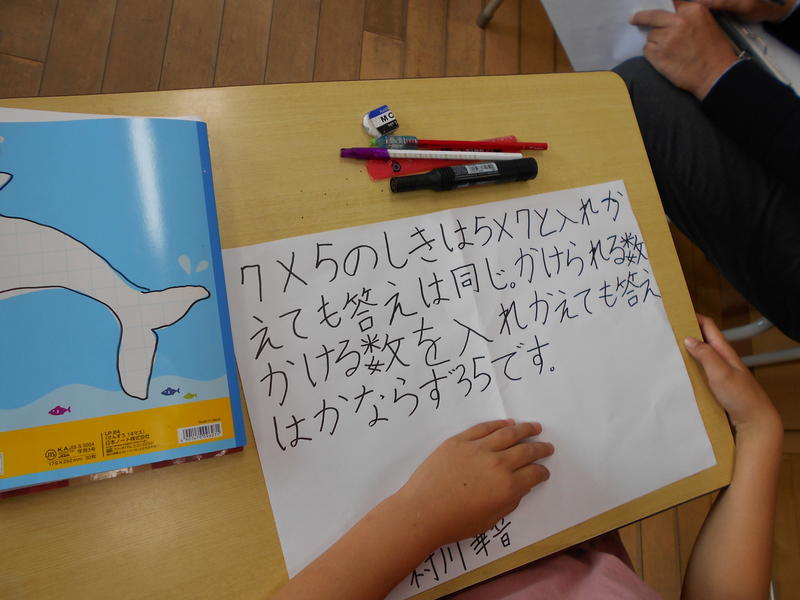 子どもたちの発想にも驚かされますが、今度は自分の考えを他人にわかりやすく説明していく場面です。