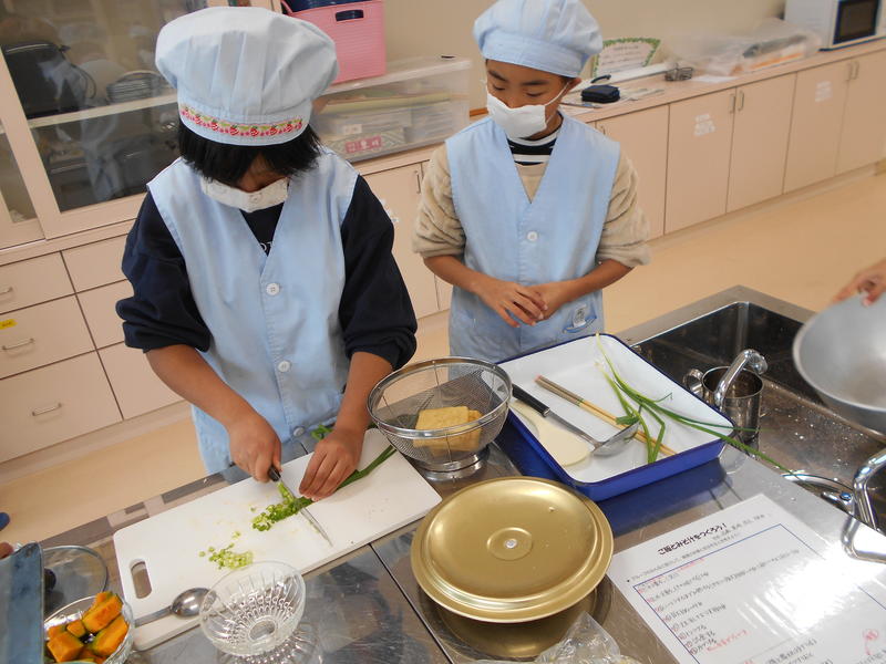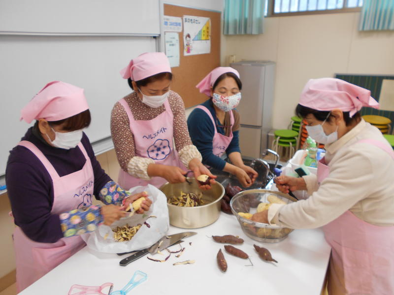 さて、本日は3年生で地元「小川町ヘルスメイト」の方々にご協力いただき、「サツマイモ餅」づくりを行いました。早めに来られてすぐに手際よく、芋の皮むきに取り組まれました。その中には、学校の畑で収穫された芋も含まれていたようです。