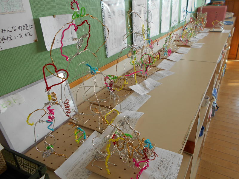 5年生では「ワイヤーアート」と題して、針金で思い思いに造形を楽しんでいました。