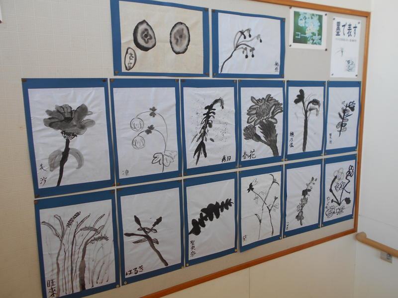 6年生は「墨で表現」。中には有名な水墨画のように、とても趣のある作品が並んでいました。