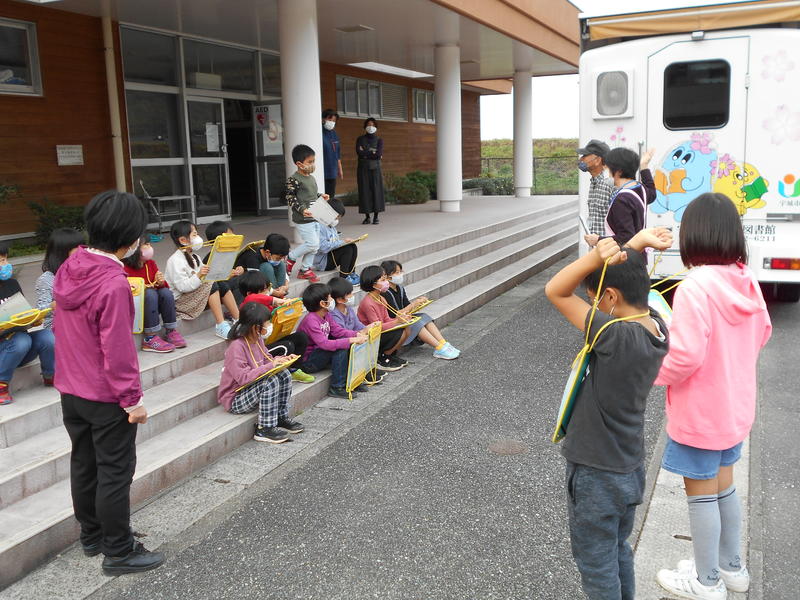 先週金曜日に、「うきうき号」が本校にやってきました。本来は、毎月第一金曜日に来校されます。2年生が係の方に質問等を行っていました。約3000冊の本を積んでいると分かると「すご~い」、ドアがたくさんあることを知ると「わぁ~っ!」、ルーフから幌(タープ?)が自動で出てくると、もう大変!! 本のことよりうきうき号に興味津々の様子でした。たくさんの本を借りた後、最後はお礼の挨拶をしました。お世話になりました。
