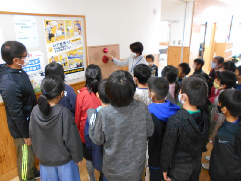 テストが終わって3時間目に、4年生が職員室の教頭先生の所へ、押し寄せてきました。社会の「火事から暮らしを守る」という学習で、一番身近な学校の防火設備を確認に来たようです。「防火管理責任者」である教頭先生から、防火設備や非常ベルの仕組みなどが、ていねいに説明されていました。知っているようで、知らないことがけっこう世の中にはあるもんです。ご家庭でも防災について、こんな機会をとらえて話題にされると面白いですよ。
