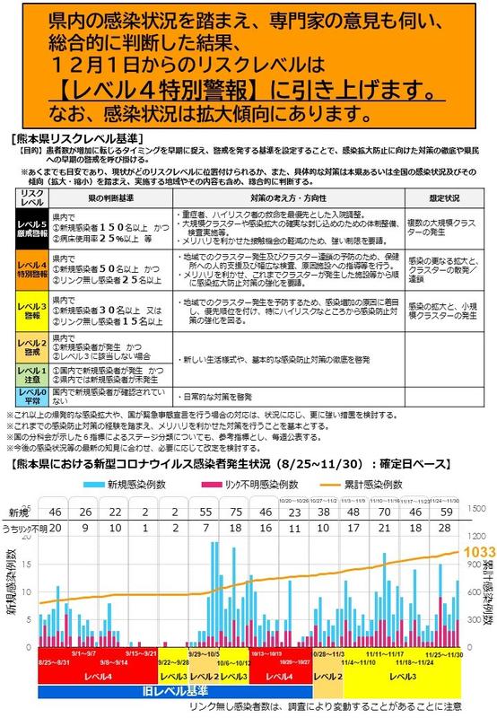 また、熊本県の感染リスクレベルが「レベル4特別警報」に引き上げられたことに伴い、次のような基準にあらためられました。