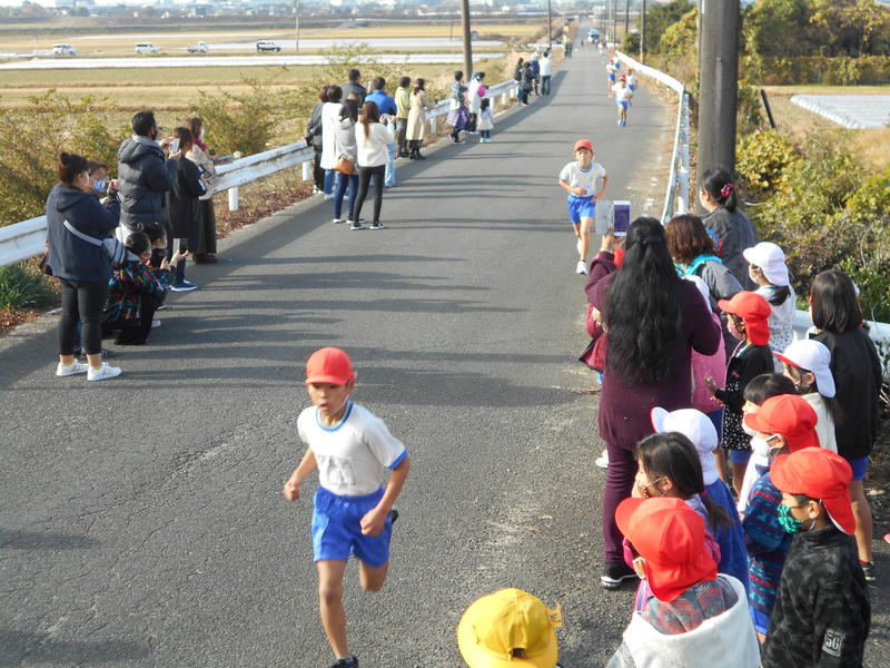 開会式が9:35から、1.2年生が9:55、3.4年生が10:10、5.6年生が10:25に出発予定です。記念碑までの直線道路を往復しますので、沿道での応援はくれぐれも防寒対策を完璧にして望んでください。また、車の駐車等も近辺の迷惑とならないよう、ご配慮をお願いします。