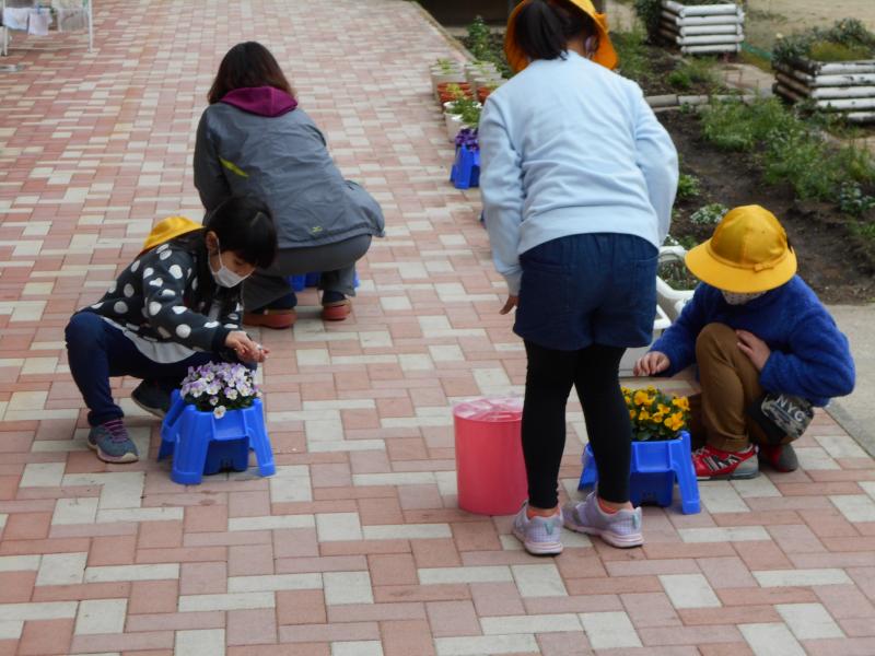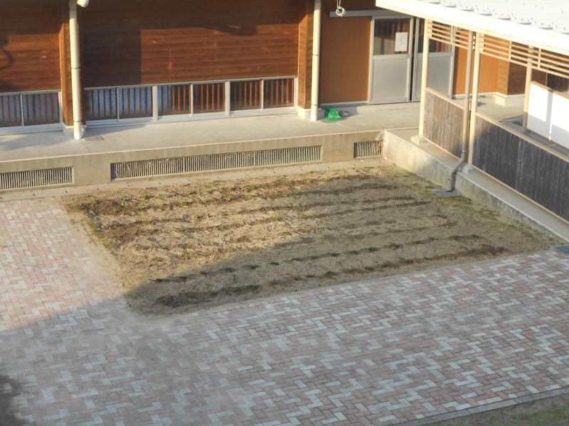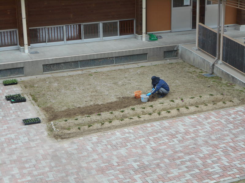 2年生の生活科の様子です。種まきとミニトマトの鉢植えをやっています。種はオクラとトウモロコシをまいていました。子供たちが種はひとさし指の第1関節までの穴をあけて植えると教えてくれました。担任の先生の教えをしっかり聞けているようです。この後の作物の生長が楽しみです。