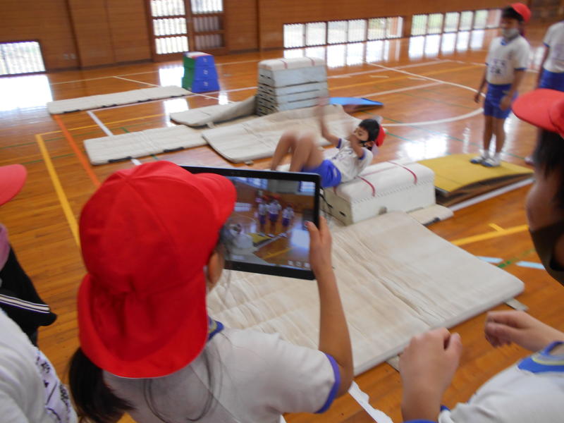 5年生は体育の授業で、「走り幅跳び」に取り組んでいました。空中に高く飛び上がることをアドバイスしてもらいながら、記録測定も自分たちの手で交代しなが取り組んでいました。ちなみに4mを超えた人もいて、将来は「カール・ルイス」かと期待しました。「カール・ルイス・・・?」、もう今の子どもたちは知らないかも・・・?。