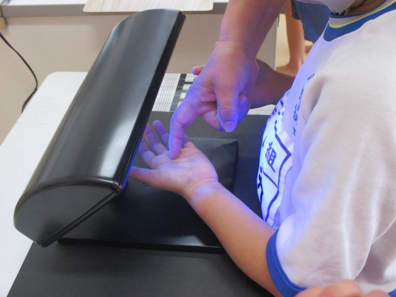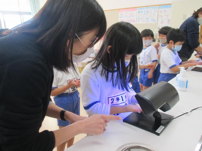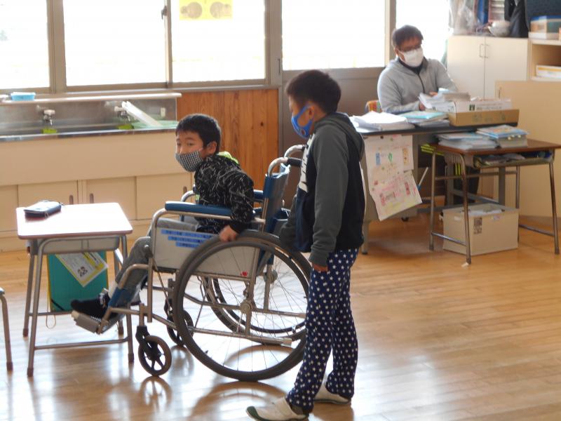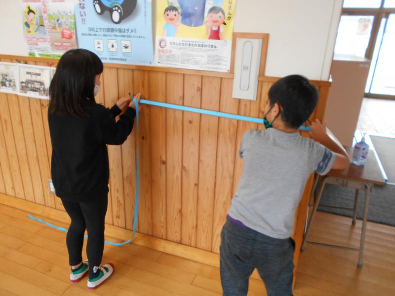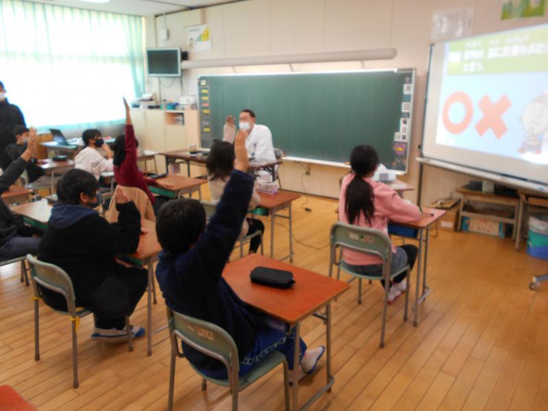 2年生では学級活動で「目を大切に」の授業でした。養護教諭の染森先生を講師にお迎えして、「目の健康チェック」をしているところでした。①姿勢、②目と本の距離、③部屋の明るさ、④ゲームの時間、⑤寝ながら読まない、⑥前髪の長さ、の6項目を確認していました。私もすぐに校長室のパソコンモニターと目の距離を測ってみました。②の正しい距離については、子どもさんにお聞きください。